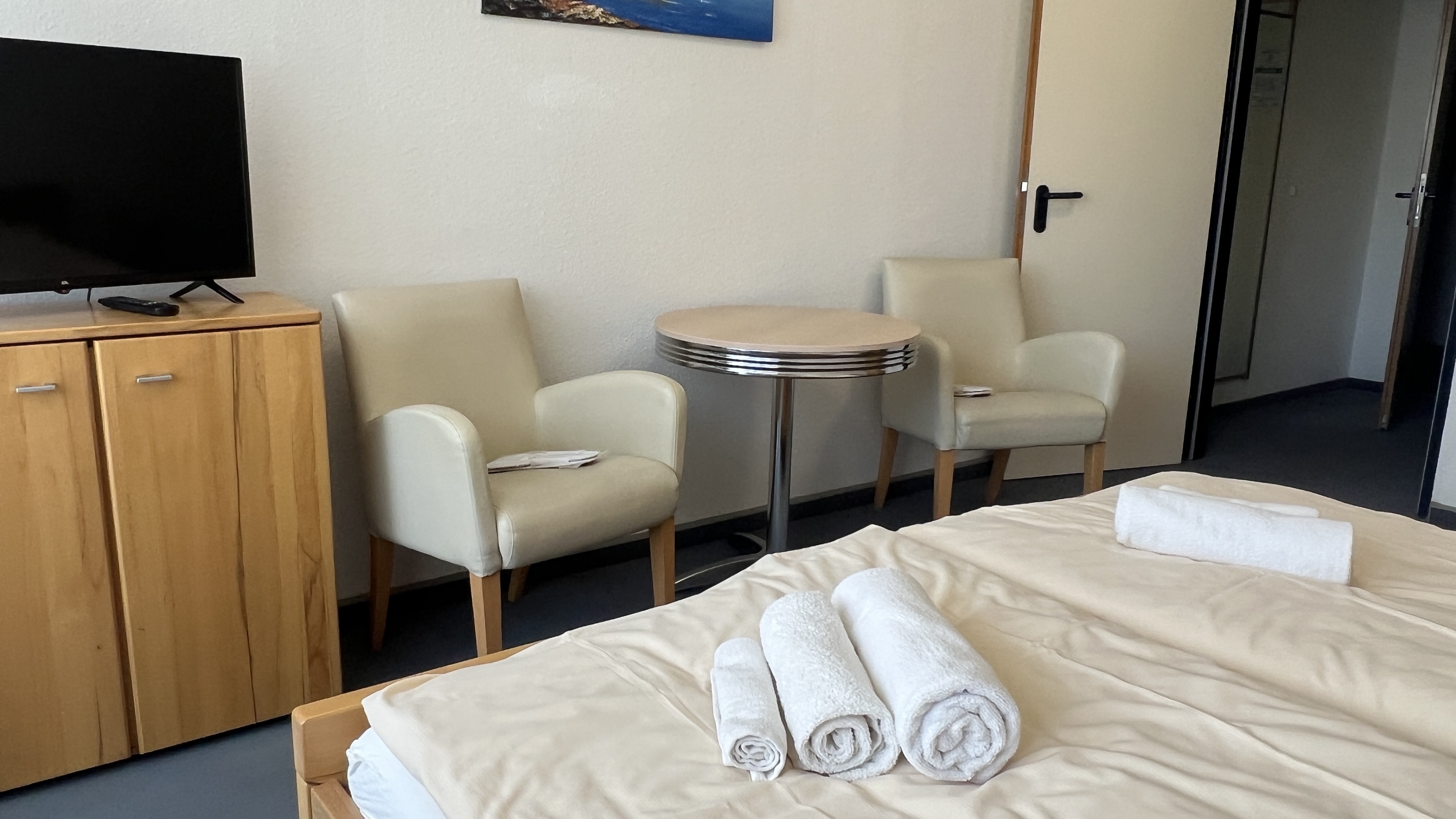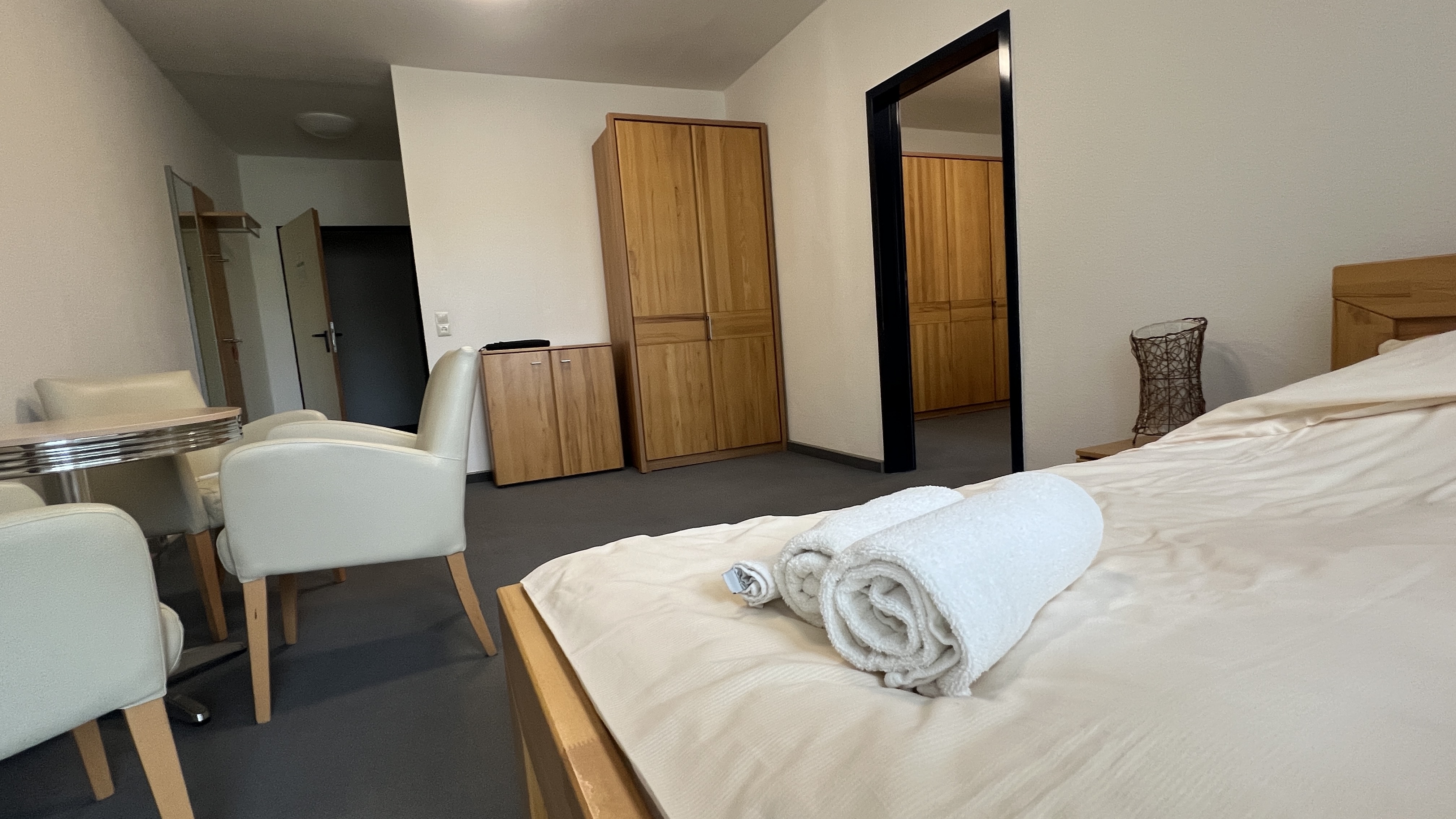 in Ihrer Pension Irodion. Unsere Zimmer bieten Ihnen eine angenehme Mischung aus Komfort, Ruhe und funktionaler Ausstattung. Helle Räume und eine gepflegte Einrichtung sorgen dafür, dass Sie sich vom ersten Moment an wohlfühlen können. Ob für eine kurze Übernachtung oder einen längeren Aufenthalt – hier finden Sie einen Ort zum Entspannen und Ausruhen.